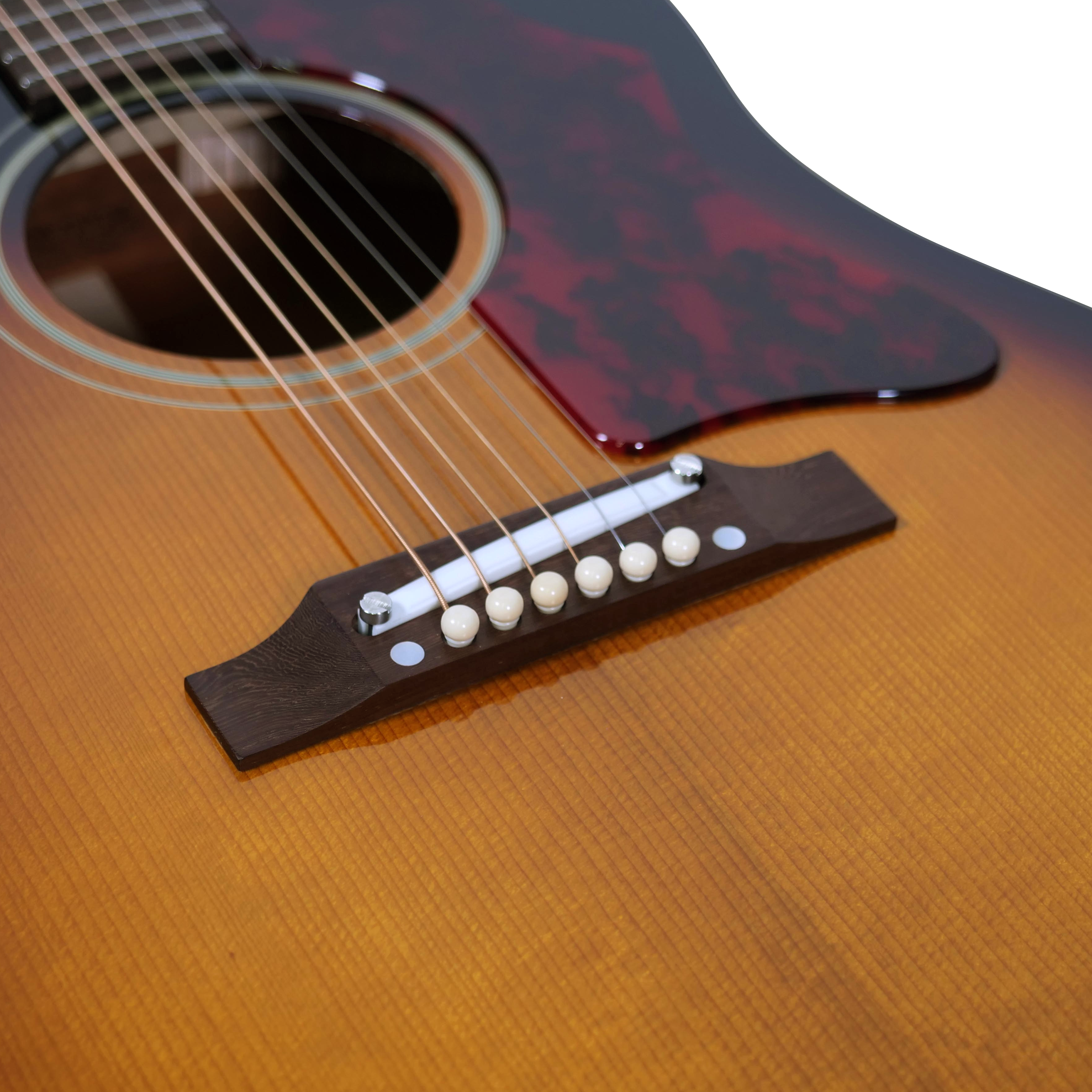 このモデルには長時間高温処理を施し、時を経たヴィンテージ材の細胞に近づけた、トリファイド・アディロンダック・スプルースを使⽤しています。新しく楽器になった瞬間からヴィンテージサウンドのニュアンスを持っており、アジャスタブルサドルによるカッティングの切れの良さに加え、より図太くドライな低音域が特徴です。